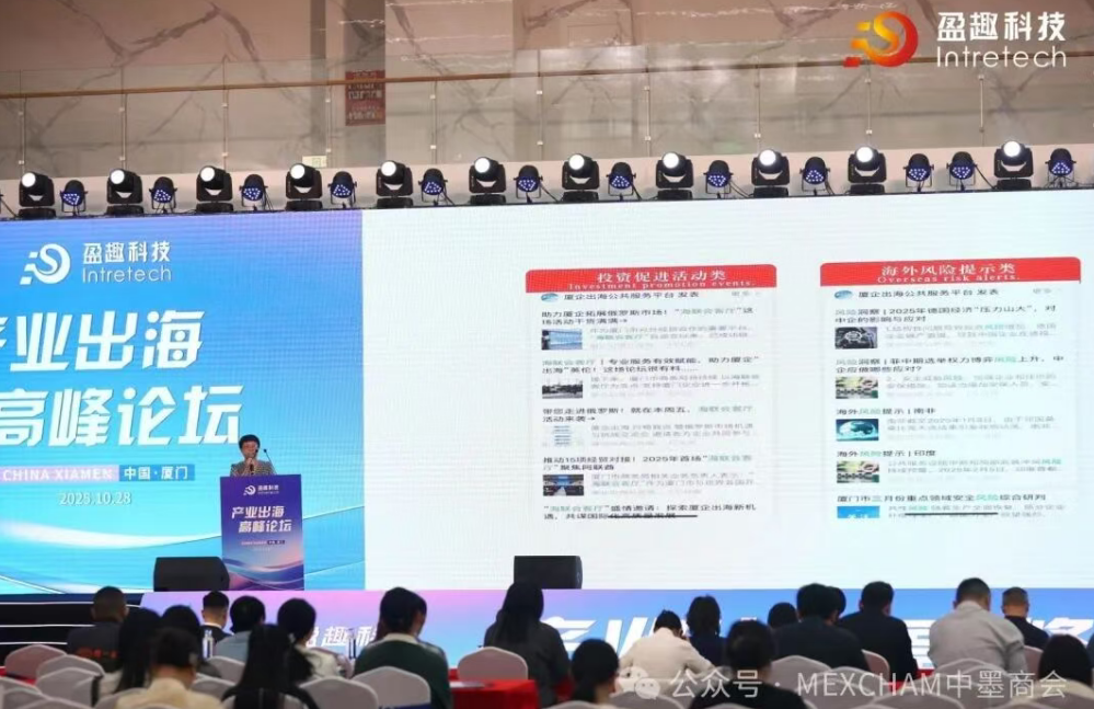 2025年10月28日,由厦门市海外综合服务(墨西哥)工作站主办,厦门盈趣科技股份有限公司承办的“产业出海高峰论坛”,在盈趣科技创新产业园成功举办,中国墨西哥商会受邀参加。