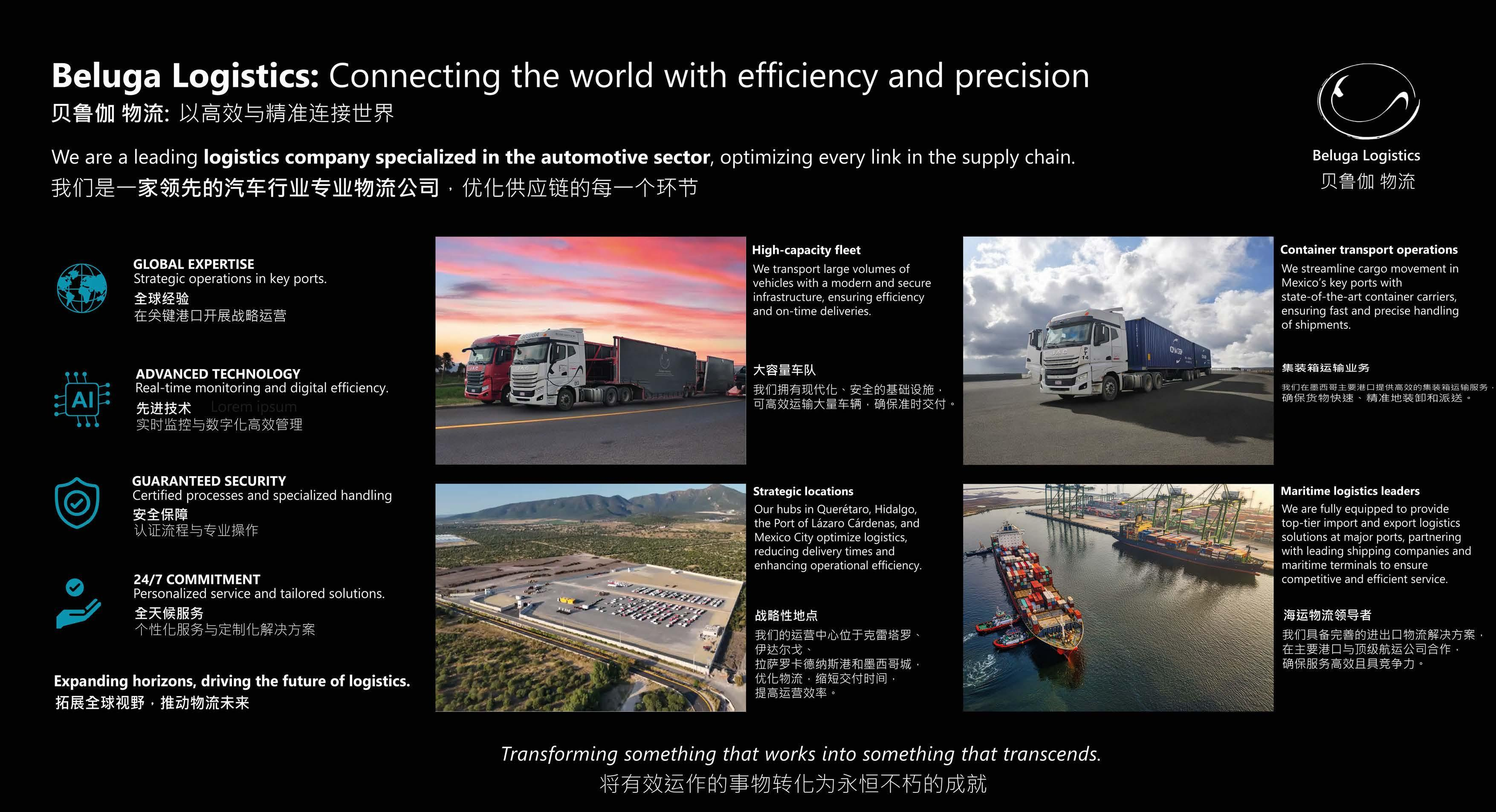 贝鲁伽是一家专注于汽车行业的专业物流公司,凭借全球业务经验、先进技术、安全保障及全天候服务等优势,在汽车物流行业中占据领先地位。该公司致力于“追求卓越”,拥有独特的综合战略,使物流运营商能够优化路线,加快周转时间,并确保每辆车都能顺利到达目的地。