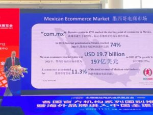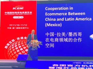2022年11月11日,中国国际跨境电子商务博览会在福建厦门举行。中国墨西哥商会(MEXCHAM)由其执行副主席Victor Cadena先生代表,就“墨西哥电子商务概览,中拉视角”发表了演讲。