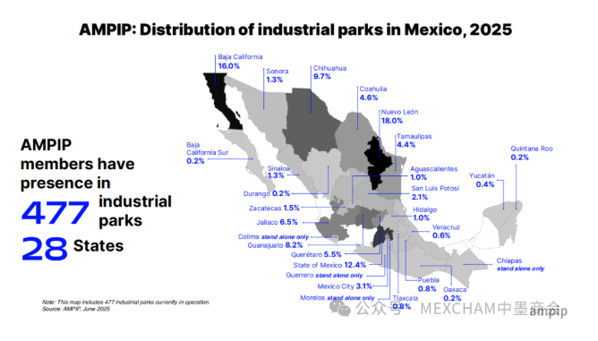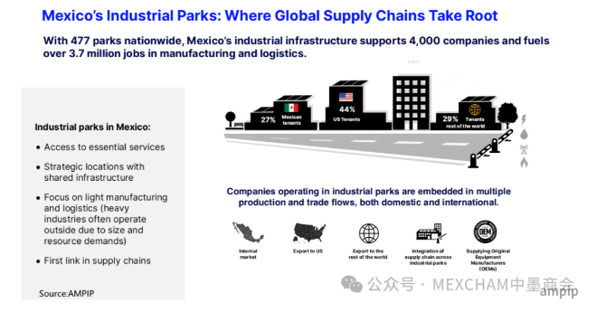 墨西哥在全国拥有477个园区,工业基础设施支持着4000家公司,并为制造业和物流行业提供了370多万个就业岗位。
