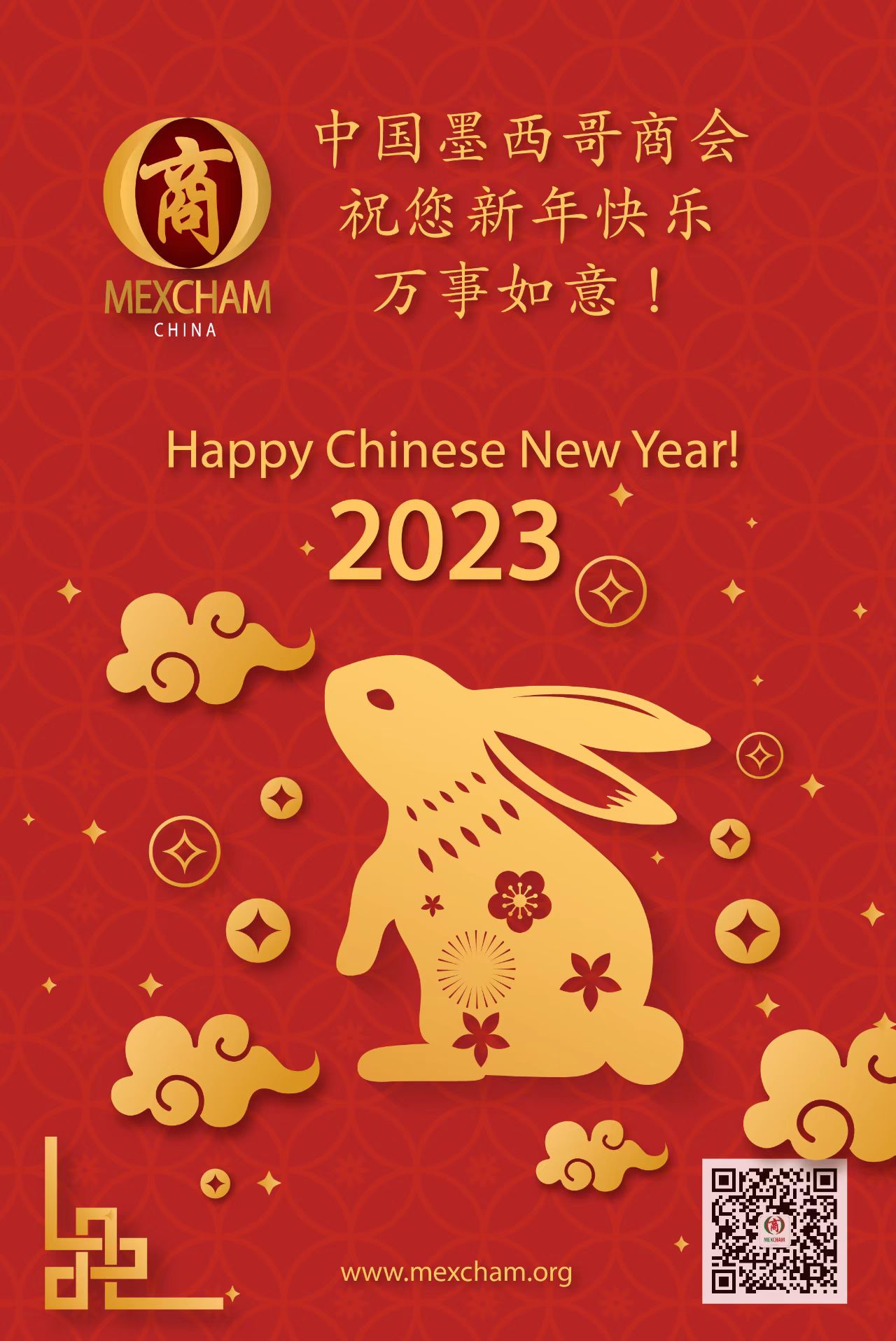 亲爱的朋友们、会员们以及合作伙伴们: 中国墨西哥商会(MEXCHAM)祝愿各位在2023兔年身体健康!万事顺意!马到功成! 中国墨西哥商会将继续作为墨西哥与中国之间的桥梁,不断努力。 C.....