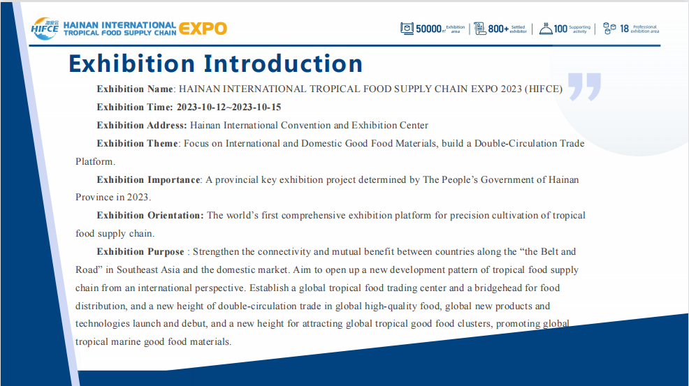 中国墨西哥商会(MEXCHAM)邀请您参加将于2023年10月12日至15日在中国海南海口举行的海南(海口)国际热带食品供应链HIFCE展会。