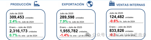 出口数据彰显了墨西哥制造业的实力。7 月轻型车出口量为 289,598 辆,较 2024 年同期的 268,385 辆增长 7.9%,创下历年 7 月出口量新高。