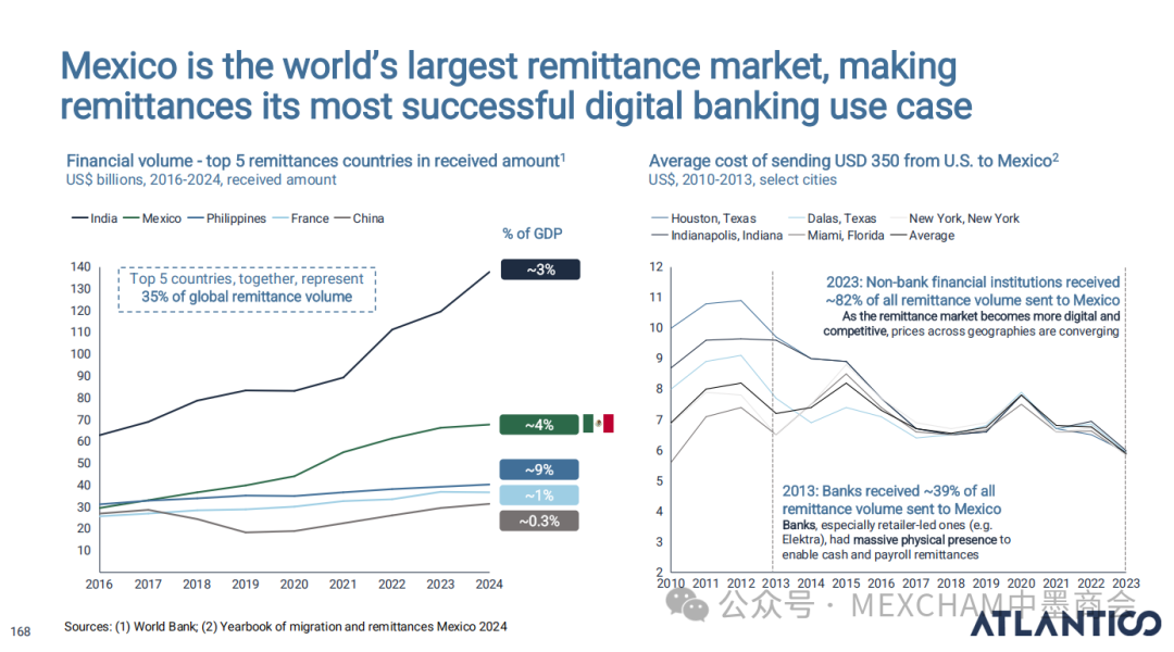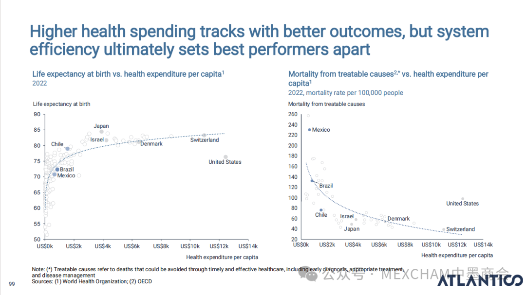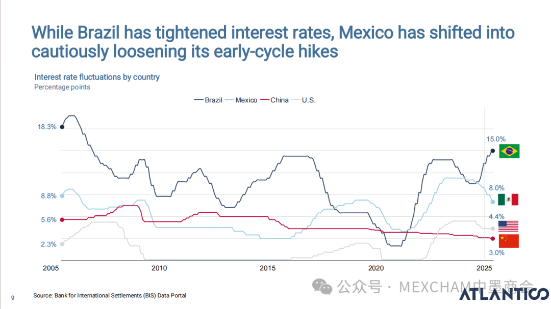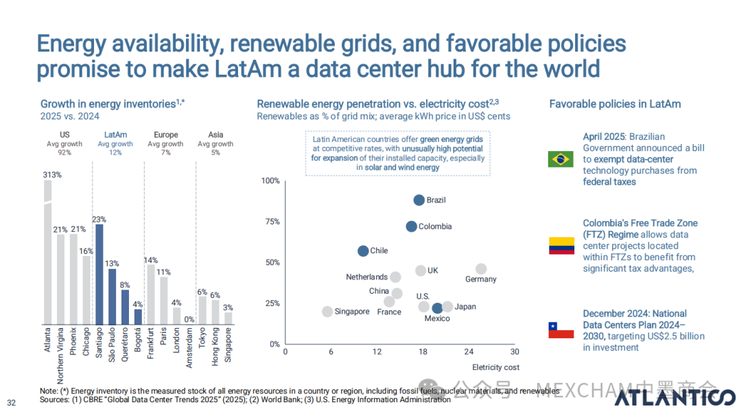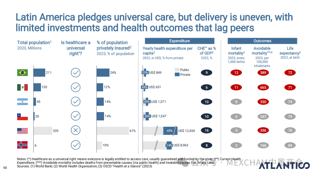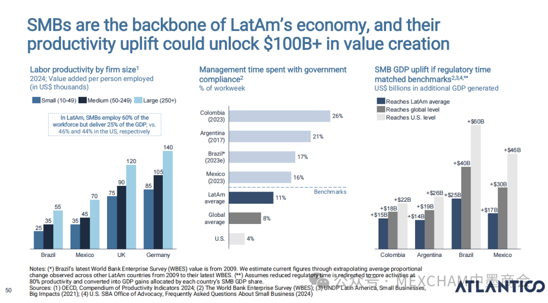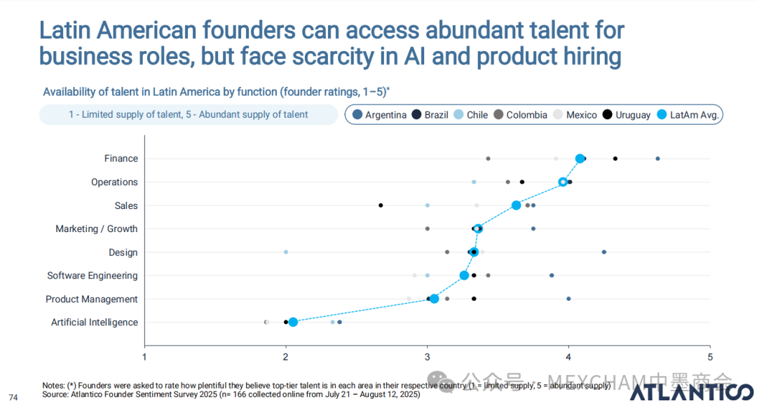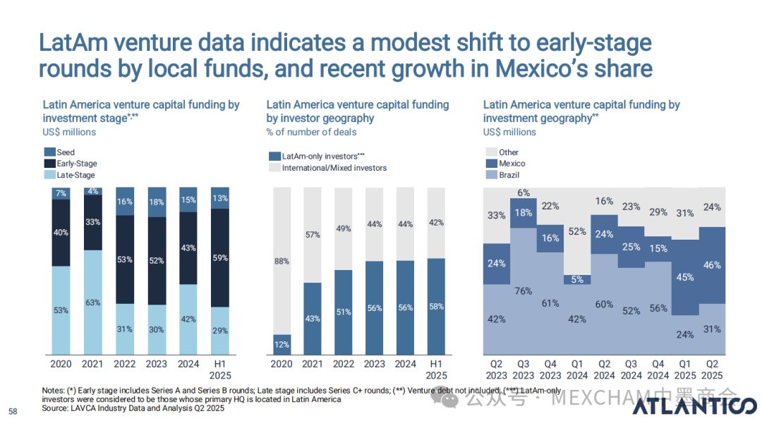 拉丁美洲的互联网普及率可与发达市场比肩,使用强度远超美国和中国。其中,墨西哥互联网普及率近十年逐年攀升,人均每天上网时间为7.5小时。拉丁美洲在全球社交媒体使用强度方面表现突出,WhatsApp是日常使用中的核心组成部分。下图从左至右分别为社交媒体使用、平均每日WhatsApp会话次数、社交媒体在网络使用时间中的占比和利用社交媒体进行品牌研究。拉丁美洲人虽是高频网购群体,但人均消费水平较低,这表明市场潜力尚未充分挖掘。其中,墨西哥每周在线购买产品或服务的互联网用户占比为60%,而人均年度消费品支出在互联网购物则占比9%。03人工智能能源供应充足、可再生能源电网覆盖以及有利政策有望使拉丁美洲成为全球数据中心枢纽。人工智能已成为巴西和墨西哥日常生活的一部分,其中搜索、学习和工作任务引领着这一趋势。墨西哥人每天使用AI工具的人口占9%,一周使用多次占48%,不使用则占比43%。巴西人和墨西哥人对人工智能对社会和就业的影响预期已趋于谨慎。在拉丁美洲,人们更愿意与银行共享数据而非人工智能工具;人工客服仍比人工智能更受欢迎。中小企业是拉丁美洲经济的支柱,其生产力的提升有望释放逾1000亿美元的价值创造潜力。04财务人力资本拉丁美洲风险投资数据显示,当地基金正适度转向早期融资轮次,墨西哥在该领域的份额近期有所增长。拉丁美洲创业者可获得大量商业岗位人才,但在人工智能和产品岗位招聘方面面临人才短缺。05医疗保健拉丁美洲承诺实现全民医疗保障,但实施情况参差不齐,投资有限且健康成果落后于同类地区。医疗支出越高,医疗效果越好,但医疗体系的效率才是最终区分顶尖机构的关键因素。06金融科技将摩擦转化为燃料,拉丁美洲初创企业正释放金融科技领域的机遇。其中,墨西哥将围绕现有摩擦点进行建设。墨西哥是全球最大的汇款市场,使汇款成为其最成功的数字银行应用案例。完整报告请点击下方链接 Click below to read the complete report.
