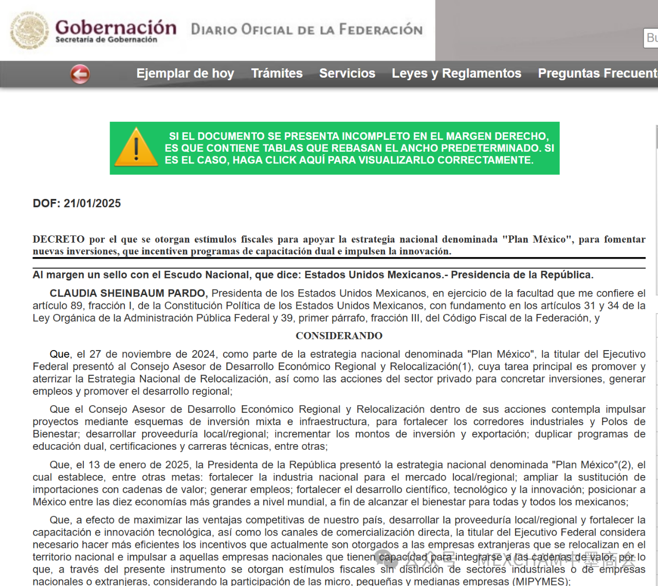 On 21 January 2025, a Decree was published in the Official Gazette of the Federation granting tax in.....